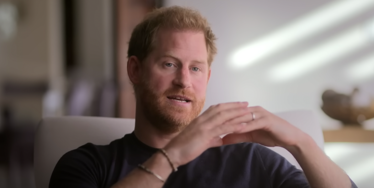 Next, we see Harry grinning over his trip outside the UK (which is self-explanatory), and when we next see him being interviewed about moving on to the next chapter in his and Meghan’s lives.