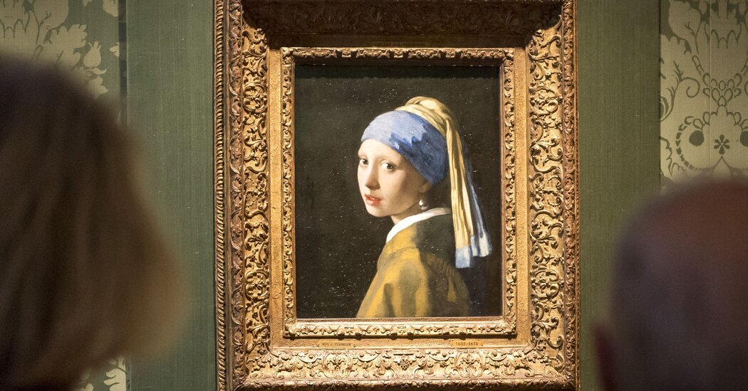 A climate protester stuck his head on ‘Girl with a Pearl Earring’, the famous painting by Johannes Vermeer that was on display at a museum in The Hague on Thursday, the latest in a series of actions by activists that have targeted world-famous paintings in recent months as protesters have sought to draw attention to climate change. .