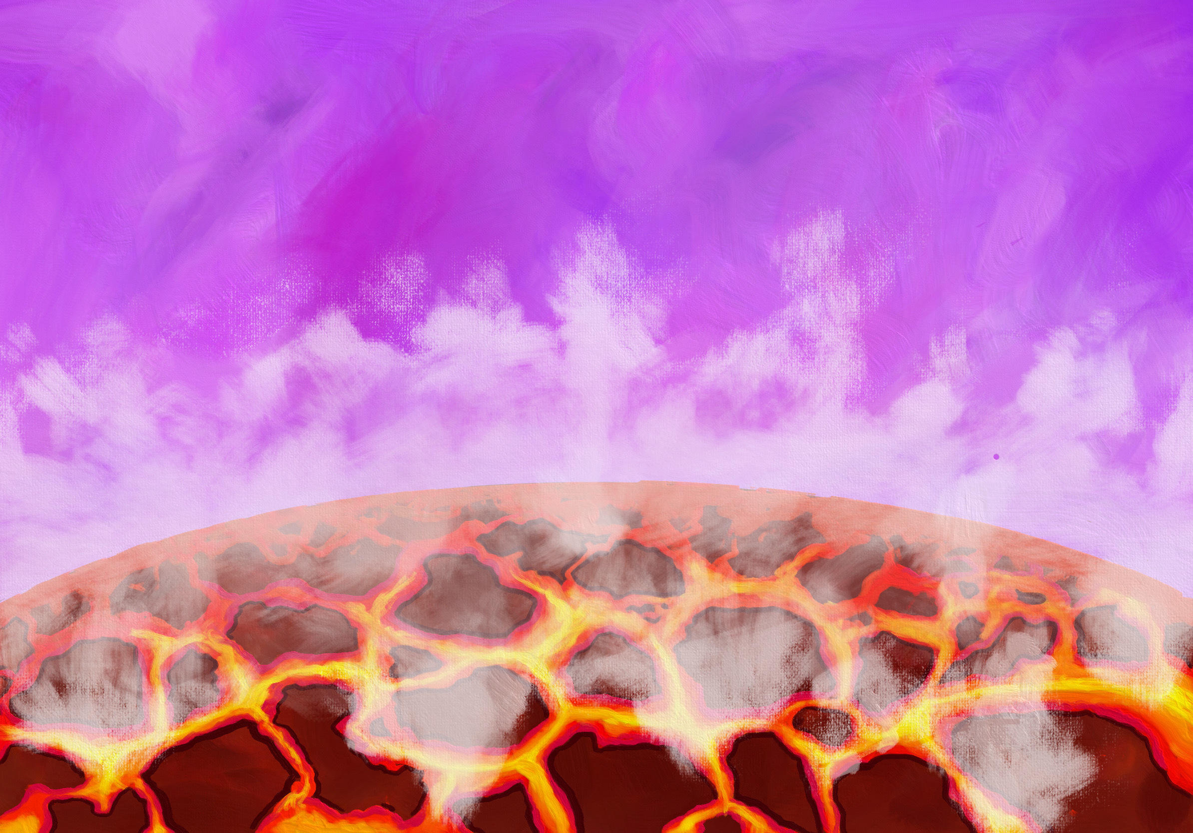 An artistic impression of the molten surface of a young planet interacting with its atmosphere to form water vapor. Credit: Tadahiro Kimura