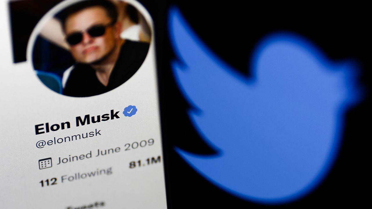 Elon Musk’s Twitter profile is displayed on the computer screen and the Twitter logo displayed on the phone screen. (Jacob Borzeki/NoorPhoto via Getty Images/Getty Images)