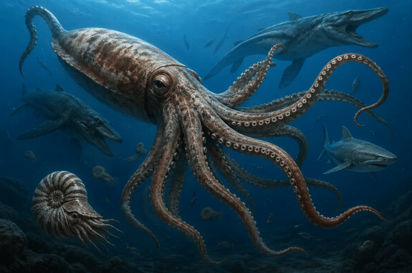 A massive, octopus-like predator stretching up to 60 feet long may have been one of the dominant hunters in Earth’s oceans during the age of dinosaurs, according to new research analyzing fossilized jaws. The findings challenge long-held assumptions about marine food chains in the late Cretaceous period, roughly 100 million years ago.