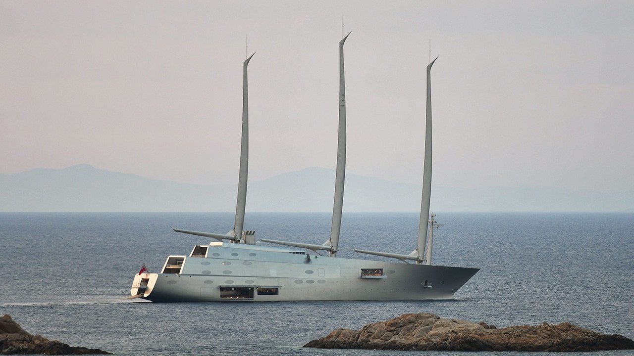 This photo taken on March 10, 2022 shows the sailing yacht A owned by Russian oligarch Andrei Melnichenko in Trieste, Italy. – A sailing yacht is the largest private motor yacht with the assistance of sail in the world. (Photo by Jury Makovich/AFP) (Photo (Photo by JURE MAKOVEC/AFP via Getty Images/Getty Images)