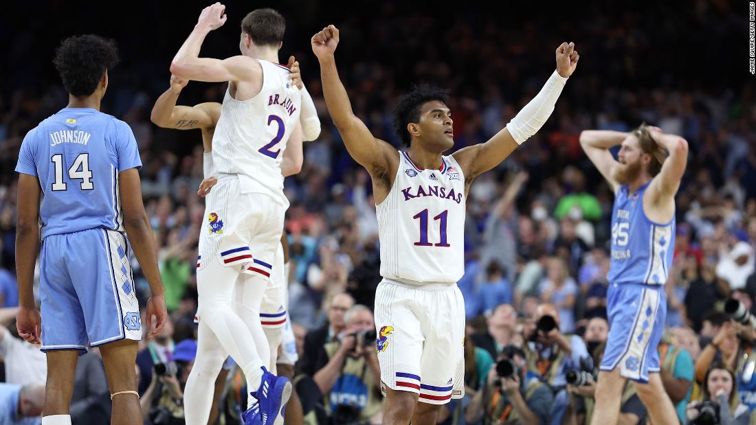 Kansas quickly took a three-point lead and turned the ball with less than 5 seconds left when Daguan Harris Jr. ran out of bounds, returning the ball to UNC. But the final catharsis by Caleb Love was elusive.
