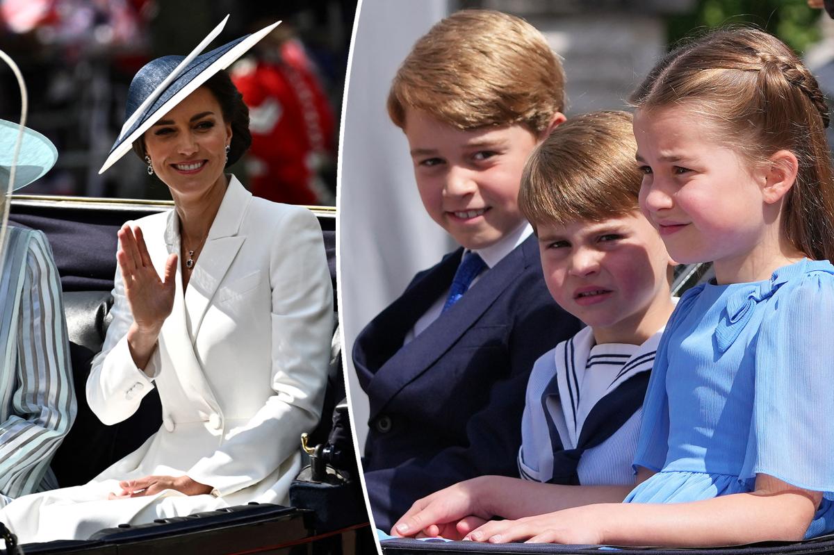 The little ones rode in a carriage with the Duchess of Cambridge, 40, and the Duchess of Cornwall, 74, as the platinum jubilee celebration of Queen Elizabeth II’s birthday began.