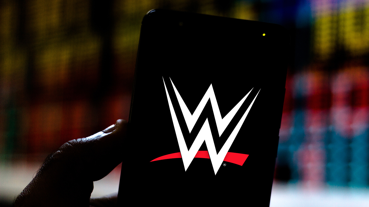 In this infographic, the World Wrestling Entertainment (WWE) logo is shown on a smartphone.