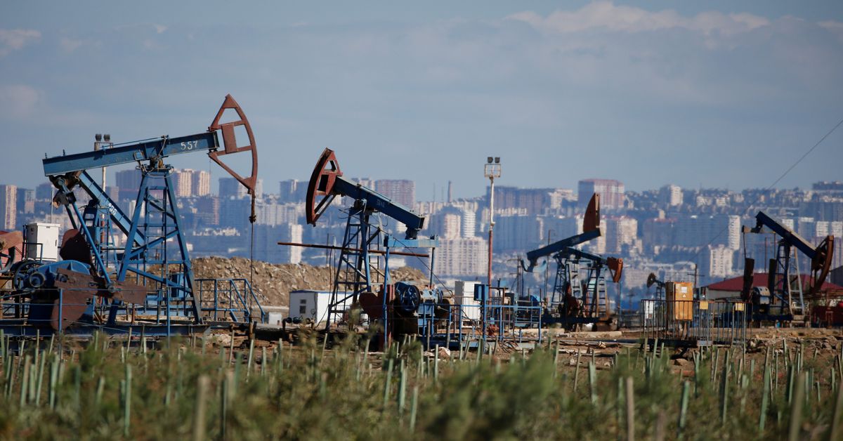 Pumping cranes pump oil into an oil field on the shores of the Caspian Sea in Baku, Azerbaijan, October 5, 2017. REUTERS/Gregory Ducor