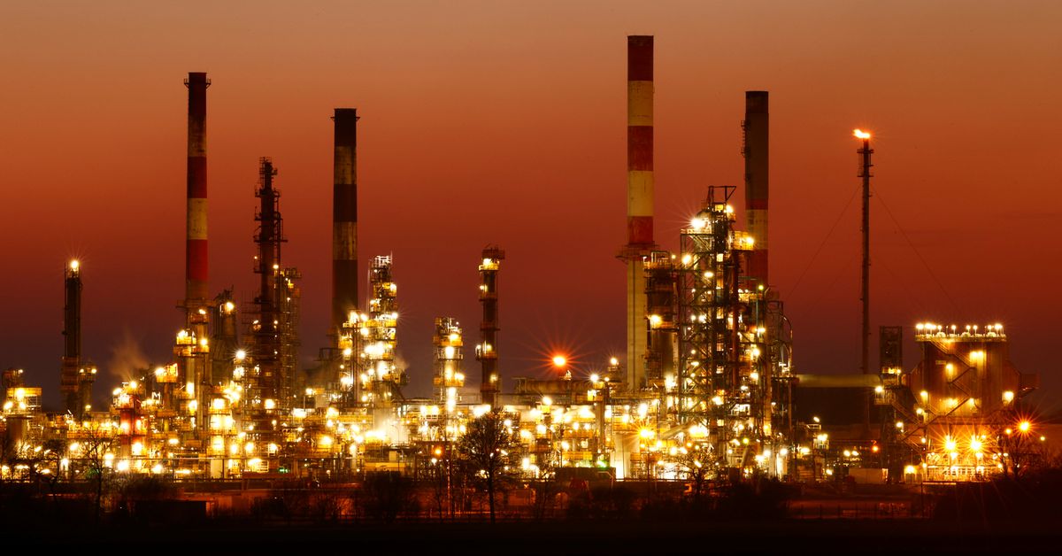 Stacks of a Total Grande Potts oil refinery seen just after sunset, southeast of Paris, France, March 1, 2021. REUTERS/Christian Hartmann