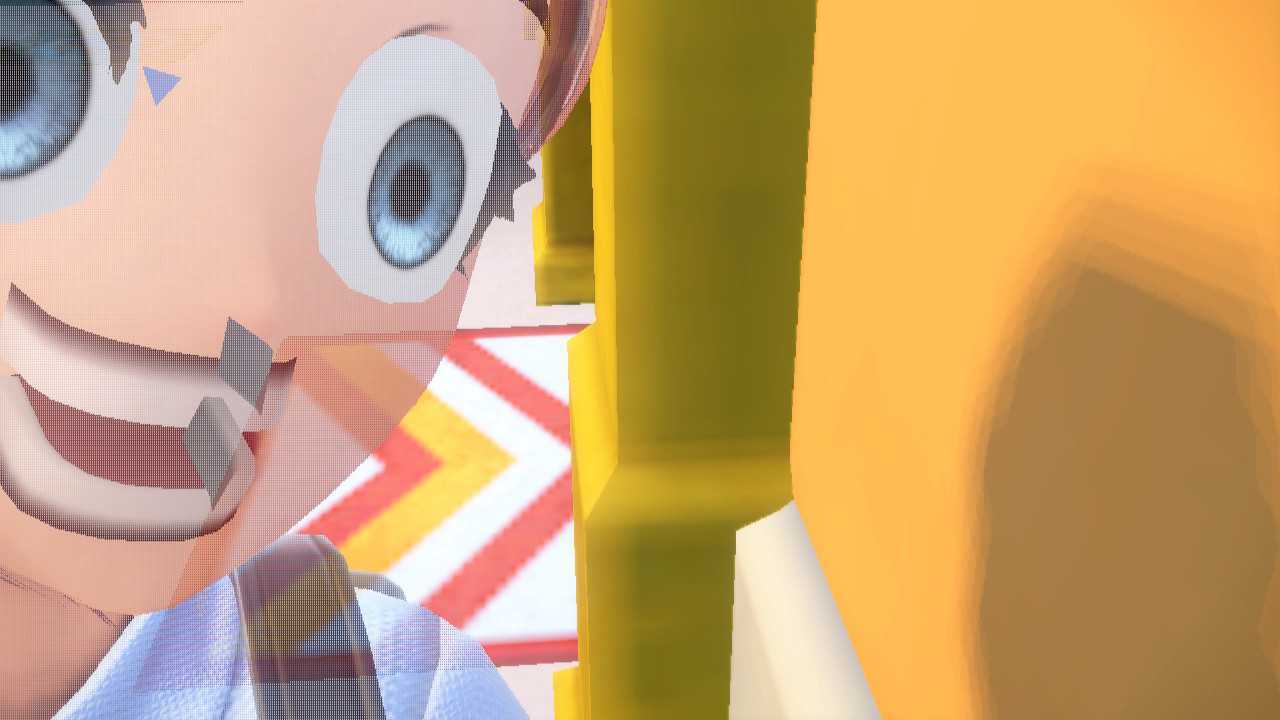 We even found one bug. It turns out that you can place your selfie camera on a wall to make just your character’s facial features pop Outside, which creates these terrifying faces: