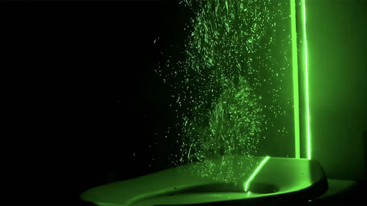 In a new experiment, scientists from the University of Colorado Boulder were able to visualize airborne particles, invisible to the naked eye, that are released into the air when a lidless toilet is flushed. (University of Colorado Boulder, YouTube)