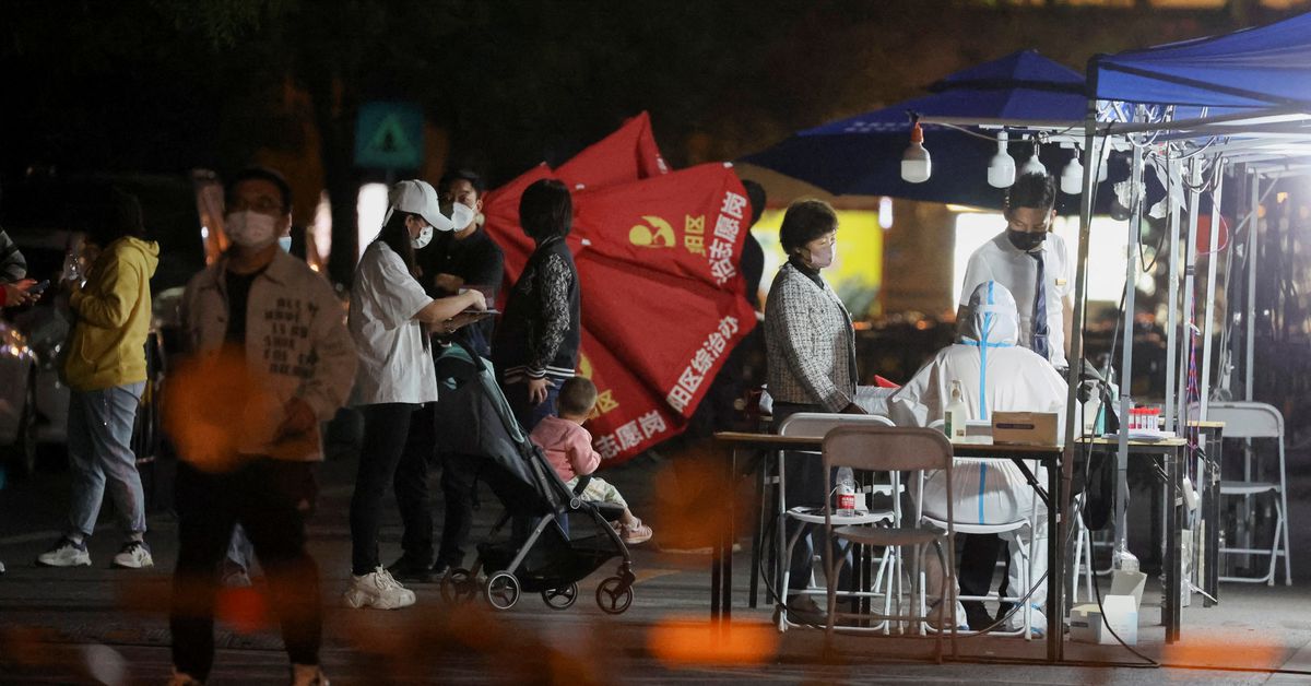 Residents line up at a temporary nucleic acid testing site during a mass testing for the coronavirus disease (COVID-19) following the outbreak, in Beijing, China, April 23, 2022. REUTERS/Tingshu Wang