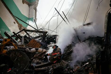 In the ruins of a five-story building in the center of the Ukrainian city of Zaporizhia, a lifeless manicured hand with bright red fingernails suddenly appears from among the rubble.