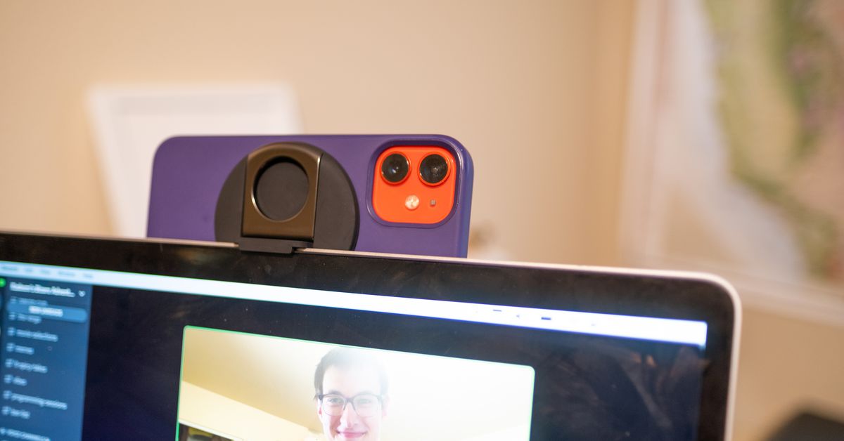 However, I don’t think this mount and continuity camera will revolutionize my regular calls over FaceTimes or Discord with friends and family for one simple reason: When the laptop is already on my lap, placing the phone on the top cover makes it very tippy, even with my little phone. When I was using it with my legs crossed my laptop would easily fall off and my phone would go across the room if I didn’t hold it. Even if I rested my arm on the palm rest, it would only take the slightest bump of the phone’s weight to pull my 13-inch MacBook Pro screen to its fullest open position, which usually results in a very unpleasant angle (and perhaps an uncomfortable amount of force on my screen). ?).