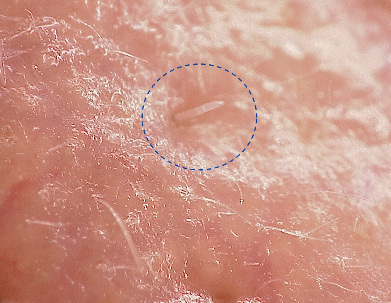 The photo shows the unusual position of a penis of Dodex follicular mite. Credit: University of Reading