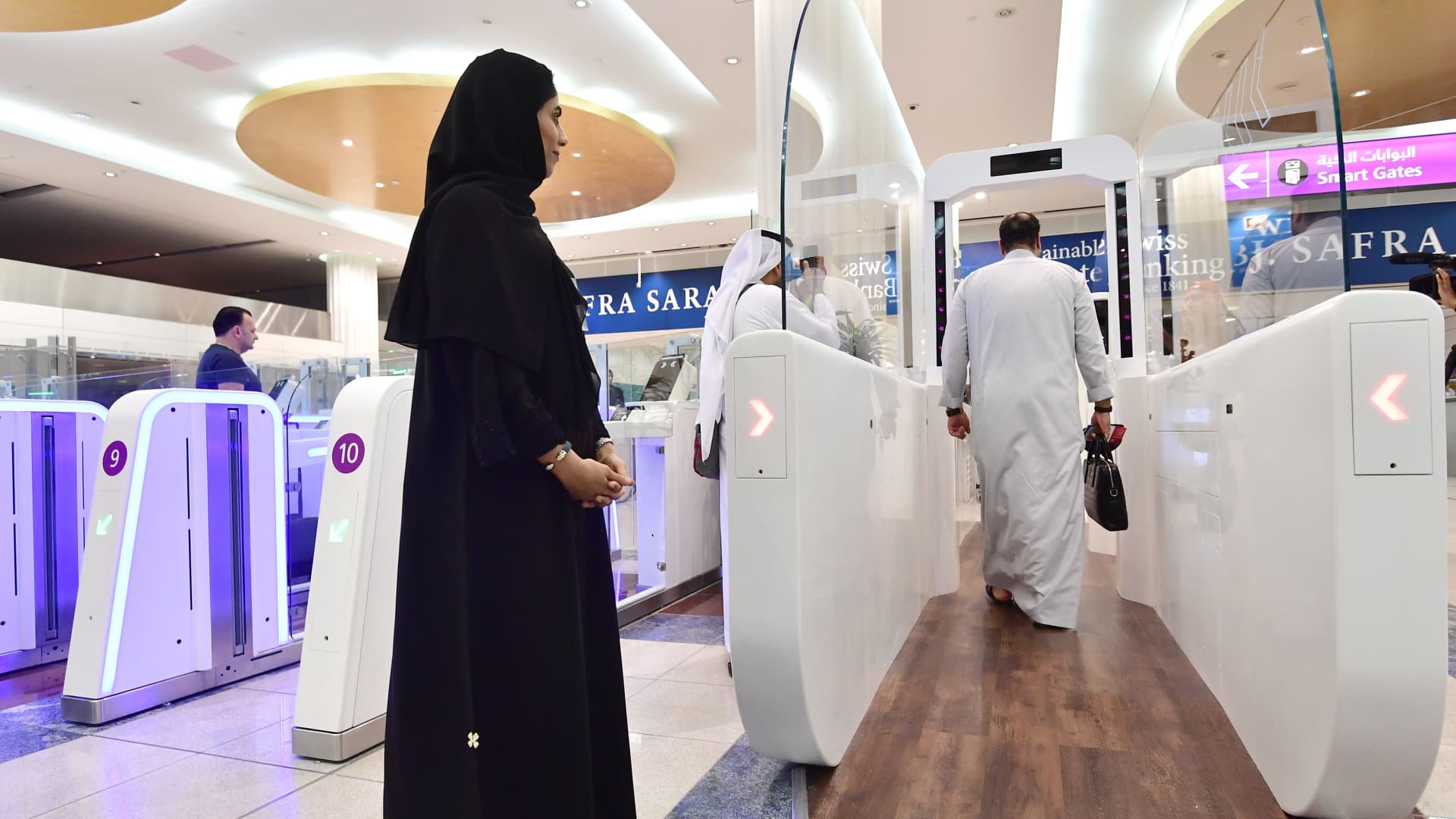 A passenger passes immigration control through a “smart tunnel” at Dubai International Airport.
