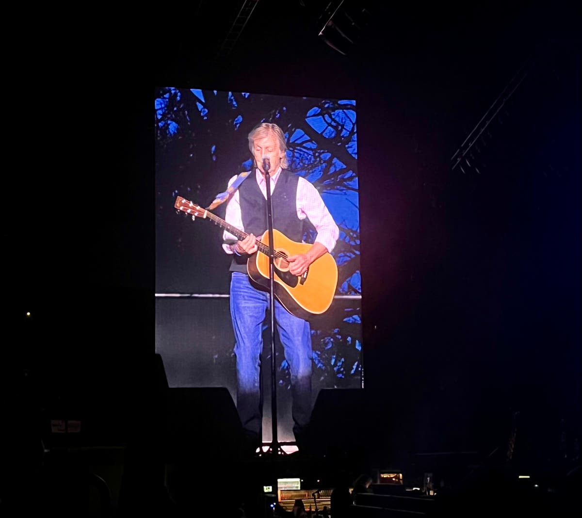 Jim was required to have McCartney perform “Till There Was You,” a song originally written and performed by Meredith Wilson, which the Beatles covered and included on their 1963 album, with the Beatles. Jim said he used to sing it to their son when he was a baby. This time, McCartney didn’t include it in his repertoire, but he played “Get Back,” another favorite.