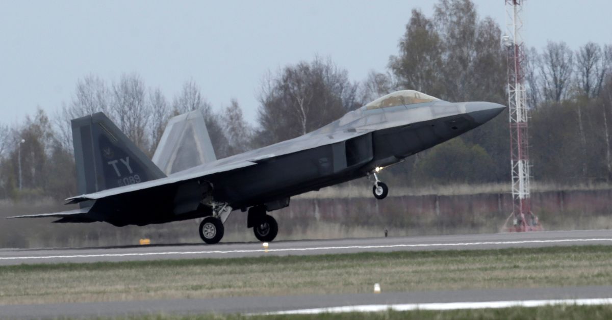 A US Air Force F-22 Raptor fighter lands at the military air base in Siauliai, Lithuania, April 27, 2016. REUTERS/Intes Kalinins/File photo