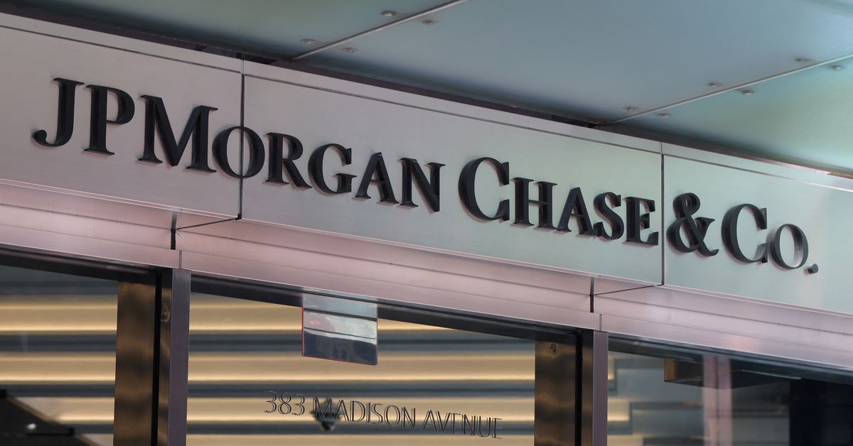 Signs are seen at JPMorgan Chase & Co’s New York headquarters in Manhattan, New York City, US, June 30, 2022. REUTERS/Andrew Kelly