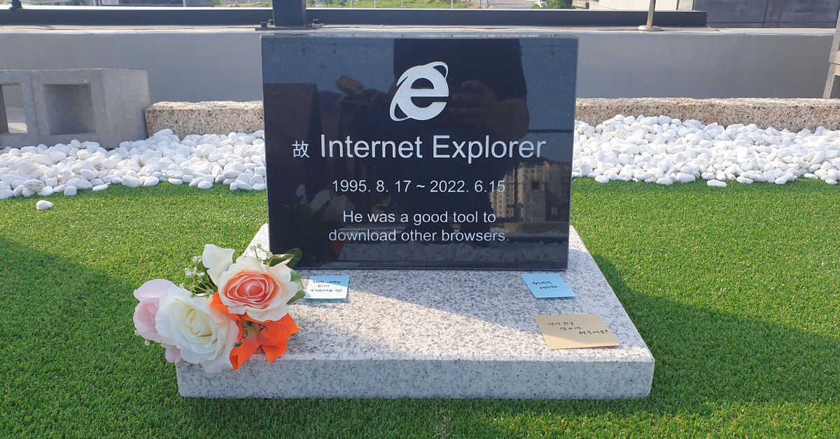 To commemorate her demise, he spent a month and 430,000 won ($330) designing and ordering a tombstone with the Explorer “e” logo and the English message: “It was a good tool for downloading other browsers.”