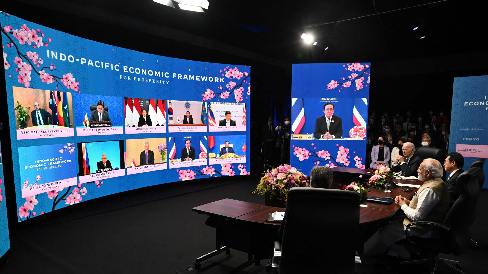 Japanese Prime Minister Fumio Kishida, US President Joe Biden, and Indian Prime Minister Narendra Modi attend the Indo-Pacific Economic Framework for Prosperity on May 23, 2022.