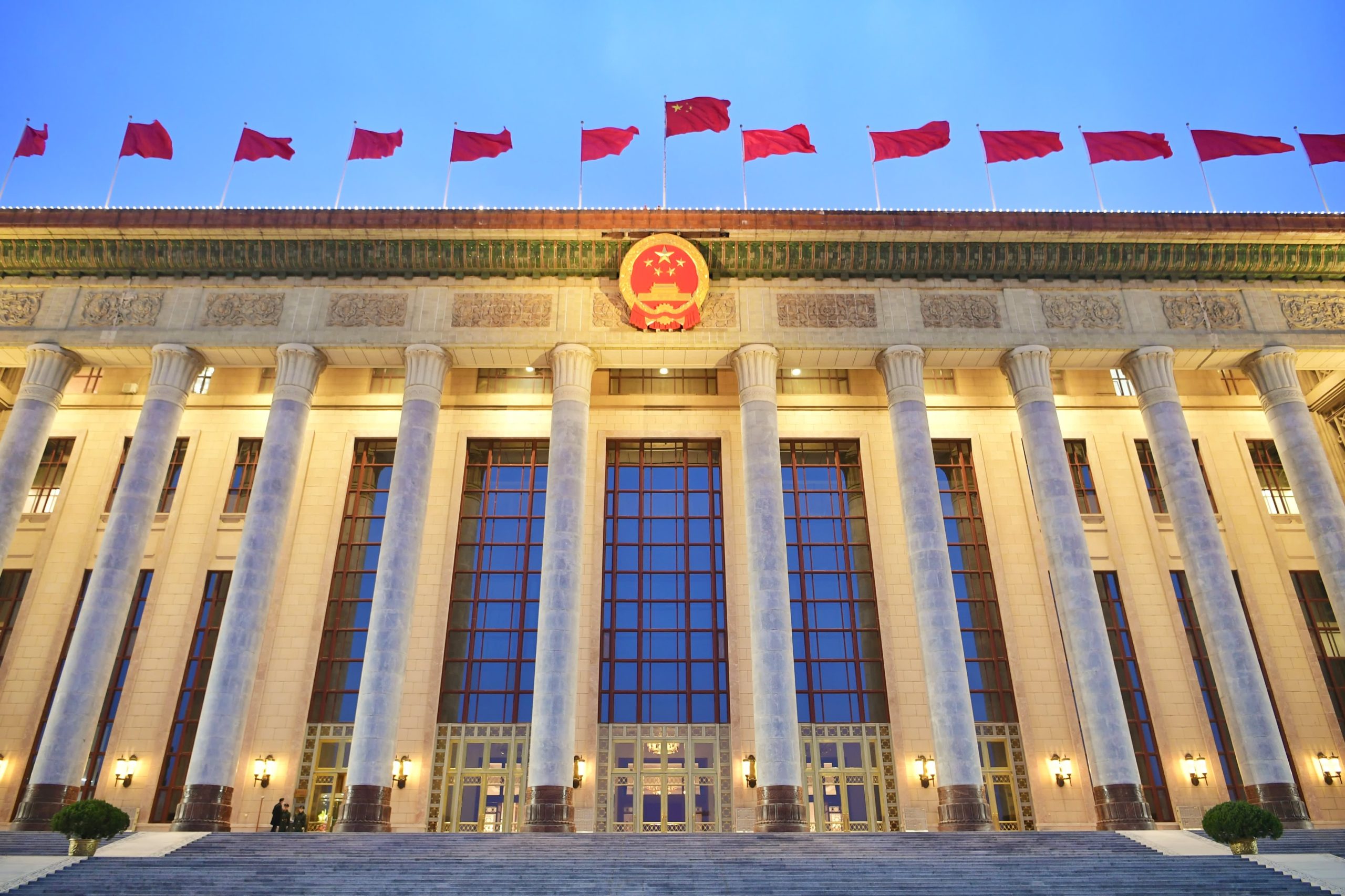 The Great Hall of the People is seen after the closing meeting of the fourth session of the 13th National People’s Congress on March 11, 2021 in Beijing, China.
